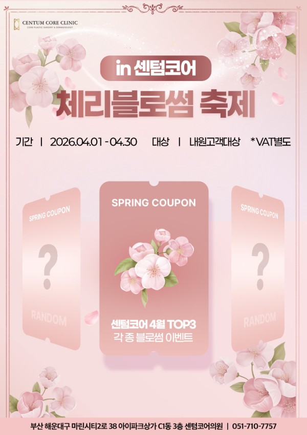 페이지 정보 작성자 최고관리자 댓글 0건 조회 586회 작성일 26-03-30 17:51 목록 본문 진행중 센텀코어의원 4월 이벤트 2026-03-30 ~ 2026-04-30 센텀코어의원 4월 이벤트 센텀코어의원 4월 이벤트 이벤트 신청하기 이벤트 신청하기 다음글센텀코어의원 3월 이벤트 26.02.27 댓글 0 댓글목록 등록된 댓글이 없습니다.